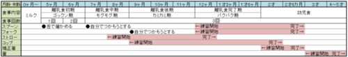 スプーン・フォーク・ストロー・コップ・矯正箸・子ども用の箸の練習開始時期と完了時期の目安についての記事です。